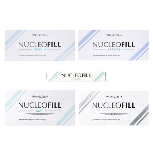 Nucleofill is the new line of natural polynucleotide-based bio stimulating gels, with a high viscosity, for protecting and rejuvenating the skin. Nucleofill products contain high molecular weight polynucleotide chains whose biochemical peculiarities make it highly viscoelastic and capable of binding and orient in space a considerable amount of water molecules, which are primarily retained in the hydrophilic groups level of phosphorylated sugars of the individual nucleotides.