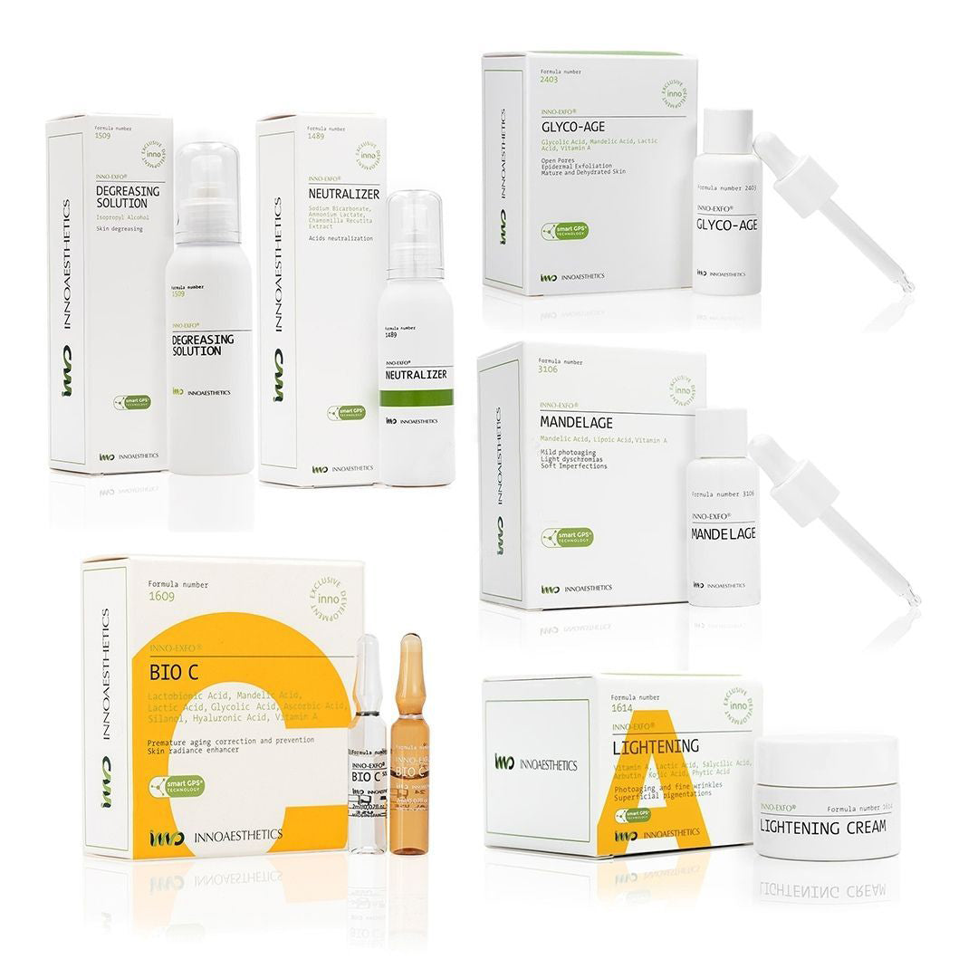 Degreasing solution has been specially designed to remove sebum and deeply cleanse and disinfect the skin before any INNO-EXFO??treatment. It effectively prepares the skin for the proper penetration of the active ingredients.