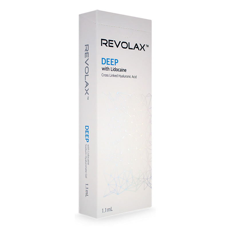 REVOLAX Deep with Lidocaine is a thick and longer lasting gel, used to treat deep wrinkles and nasolabial folds. REVOLAX Deep can also be used for augmentation of the cheeks, chin, and lips.
